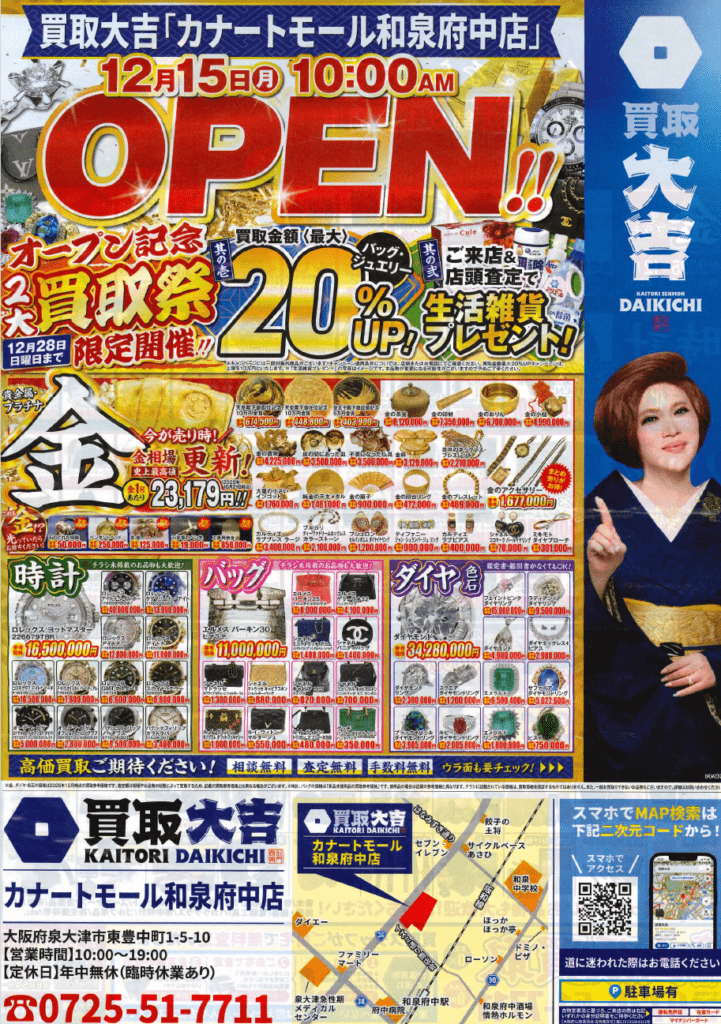 【買取大吉】カナートモール和泉府中店 新規オープンのお知らせ